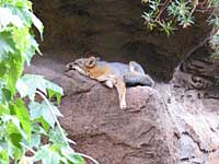 Cat Canyon is approached from above, allowing you to look down at the animals' habitat. The better view is along the underground path, where they can be seen and photographed through nearly invisible mesh screening or glass. |